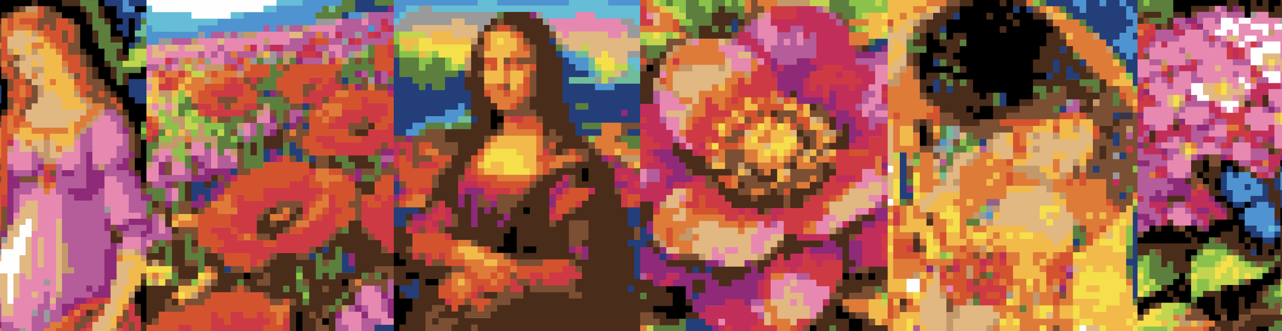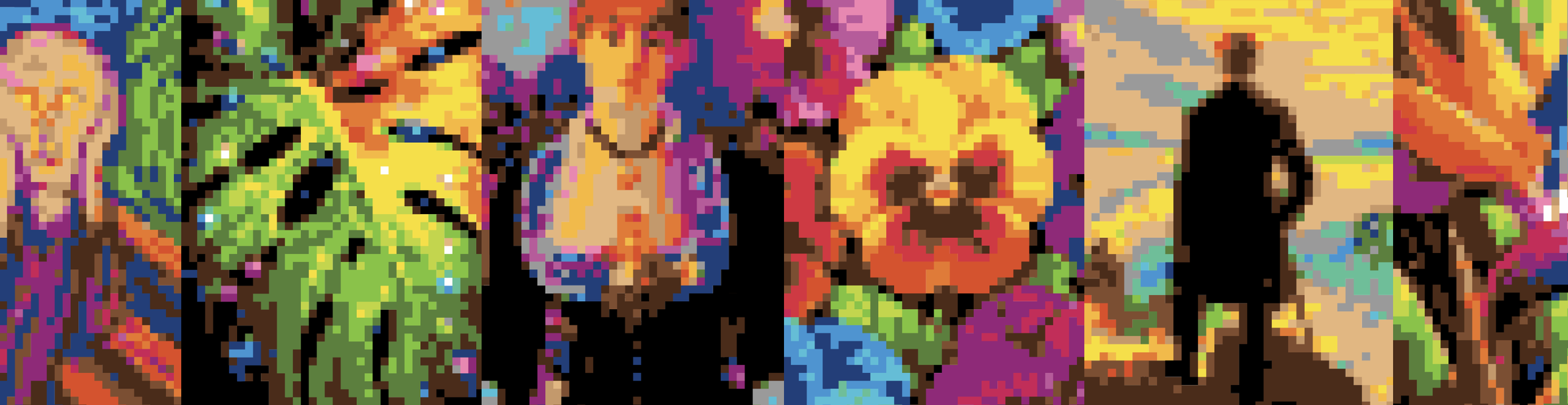 Pixel color-by-number: 30 pages of famous and iconic painting mosaics.